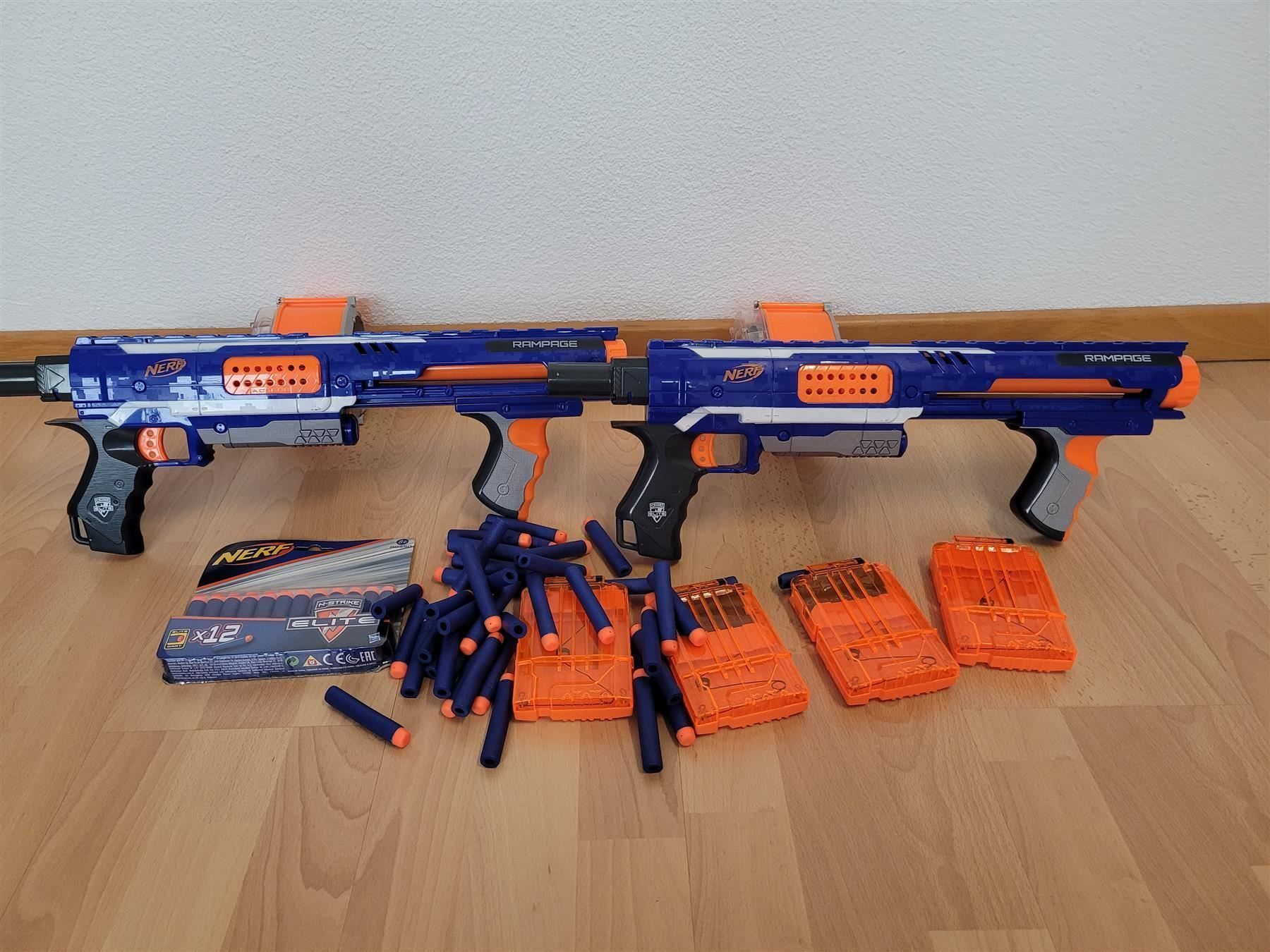 Hasbro Nerf 98697e35 N Strike Elite Rampage Spielzeugblaster In Rheinland Pfalz Hessheim Weitere Spielzeug Gunstig Kaufen Gebraucht Oder Neu Ebay Kleinanzeigen from i.ebayimg.com It is able to slam fire and has a digital camo detailed on it. Die pistolen wurden sorgsam behandelt. As i was saying, the rapid fire works really well, and is very good to ambush your enemies. The 25 dart drum holds quite a lot of ammo, but the only bad thing about this product is occasionally it gets jammed if. Choose from contactless same day delivery, drive up and more. The nerf rampage has no products found. Nerf sammlung (rampage, modulus, trystrike, uvm). On the other hand, it has also been launched in the sonic ice series, in which it is.